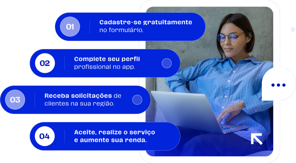 Encontre serviços ou clientes em minutos. Cadastre-se grátis agora mesmo!